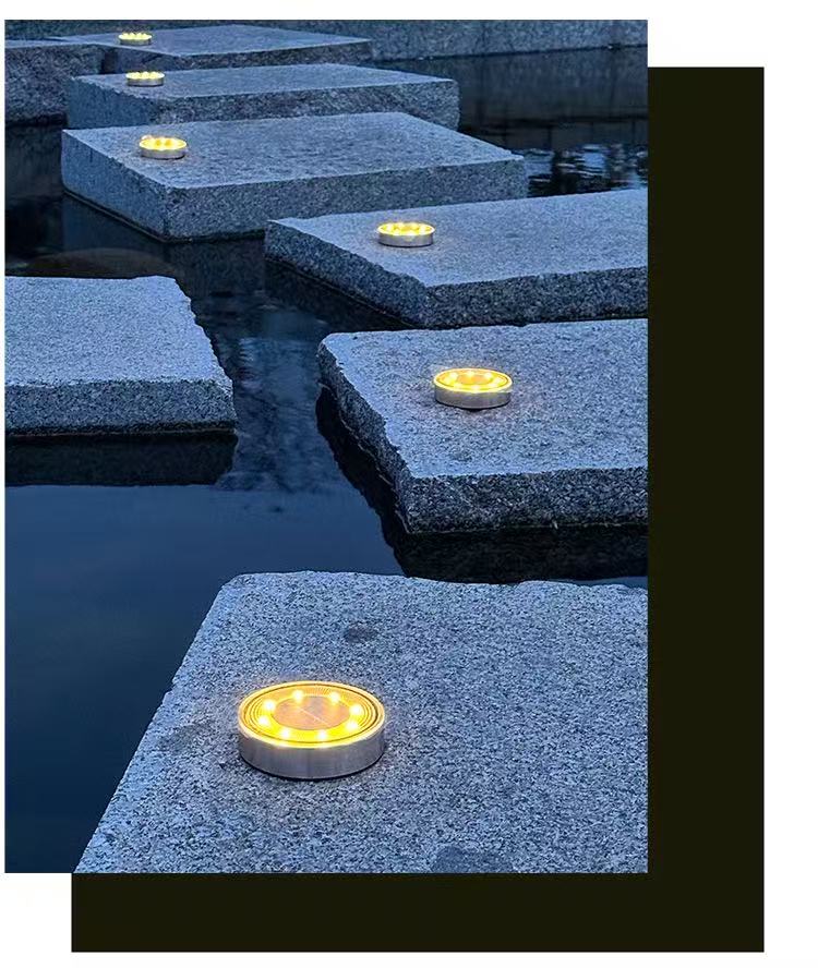 Solar-powered outdoor waterproof step lights for gardens, fields, and lawns; solar-powered in-ground lights; solar-powered courtyard lights.